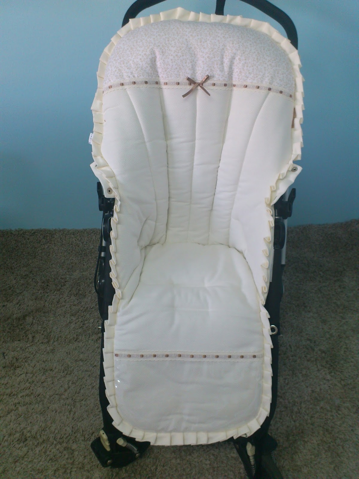 Este es un saco para bugabbo en combinación de telas piqué de nido beige con canutillo blanco con dibujo de flor liberty beige.
